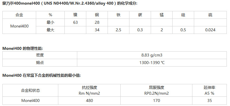 MoneL400不銹鋼無縫毛細管的耐腐蝕性能一般情況下比鎳銅更優(yōu)越,它比純鎳更耐還原型介質的腐蝕,比純銅耐氧化性介質的腐蝕,對硫酸、磷酸、碳的耐腐蝕性非常好。特別是耐氫氯酸的腐蝕,對熱濃堿也有優(yōu)良的耐腐蝕性。MoneL400不銹鋼無縫毛細管在氧氣、鹽酸、硫酸、氫氟酸以及它們的派生物中有極優(yōu)秀的耐腐蝕。同時在海水中比銅基合金更具耐蝕性Monel400屬可變形加工的鎳-銅系鎳基合金,具有很好的耐海水腐蝕和抗化學腐蝕性能,耐氯化物應力腐蝕開裂性能強。該合金是為數不多的能使用在氟化物中的合金之一。在氫氟酸和氟氣介質中具有很好的耐氧化物應力裂變腐蝕,如海水、鹽水環(huán)境中。在中等濃度的堿性和鹽溶液中,MoneL400不銹鋼無縫毛細管也有非常好的抗腐蝕性能。在較冷的的堿性環(huán)境下,該合金被用在弱酸如硫磺、氟化氫環(huán)境中。酸介質:Monel400在濃度小于85%的硫酸中都是耐蝕的。MoneL400不銹鋼無縫毛細管是可耐氫氟酸中為數極少的重要材料之一。水腐蝕:Monel400合金在多數水腐蝕情況下,不僅耐蝕性極佳,而且空蝕、應力腐蝕等也很少發(fā)現(xiàn),腐蝕速度小于0.025mm/a高溫腐蝕:Monel400在空氣中連續(xù)工作的最高溫度一般在600℃左右,在高溫蒸汽中,腐蝕速度小于0.026mm/a。氨:由于Monel400合金鎳含量高,故可耐585℃以下無水氨和氨化條件下的腐蝕。