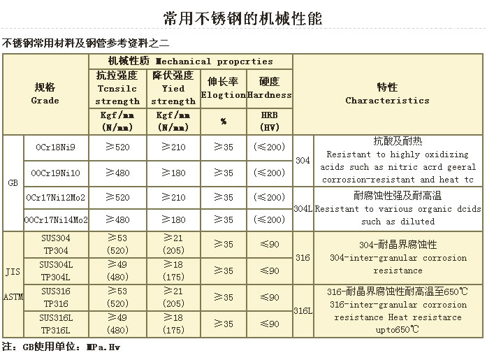 常用不銹鋼的機(jī)械性能